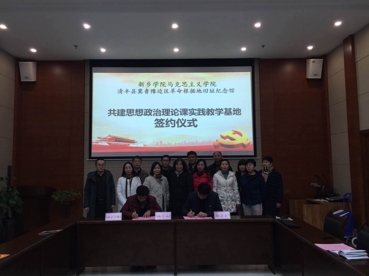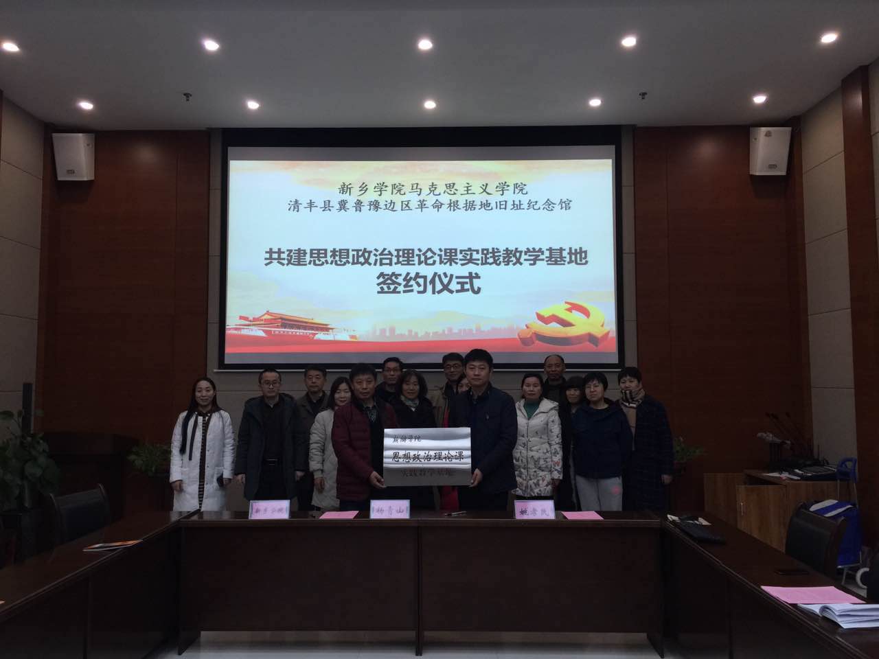 2018年11月18日上午,公司思想政治理论课教师一行20余人赴濮阳市“清丰县冀鲁豫边区革命根据地旧址纪念馆”参观考察并举行了“太阳成tyc122cc集团思想政治理论课实践教学基地”签字仪式和揭牌仪式。清丰县冀鲁豫边区革命根据地旧址纪念馆馆长姚孝民、书记赵云芳、太阳成tyc122cc集团经理杨青山、副经理郭金玲、王宇明及部分思想政治理论课教师出席仪式。仪式由冀鲁豫边区革命根据地旧址纪念馆馆长姚孝民主持。