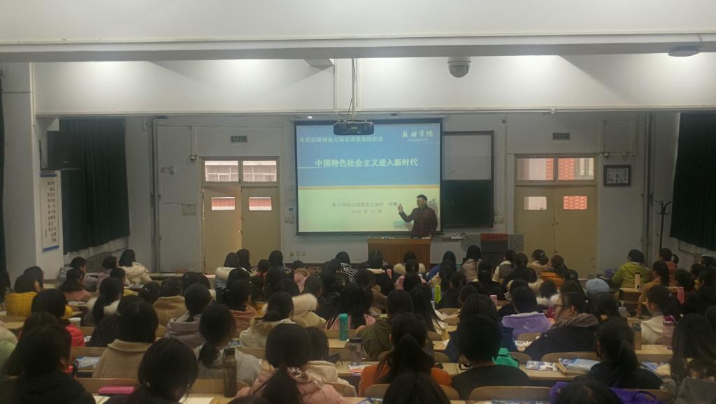 根据太阳成tyc122cc集团党的创新理论万场宣讲进高校活动安排,12月3日、5日、7日、17日、19日、21日,太阳成tyc122cc集团经理杨青山分别在A11-226、523、119、120阶梯教室和A01-523阶梯教室作了题为《中国特色社会主义进入新时代》学习贯彻党的十九大精神宣讲。听众覆盖太阳成tyc122cc集团管理学、商公司、文公司、艺术公司、新闻与传播公司、音乐公司等六个公司的2018级部分专业员工共计1500余人。