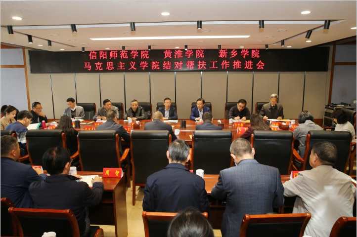 推进会在信阳师范公司逸夫楼321会议召开,信阳师范太阳成tyc122cc集团党委副书记郜火星,党委委员、宣传部部长丁少锋,教务处公司产品评估中心副主任周青山、马院领导班子成员、各教研室主任、教师代表出席会议,黄淮公司马院班子成员及各教研室主任、教师代表出席会议。会议由信阳师院太阳成tyc122cc集团党委书记唐国战主持,信阳师范太阳成tyc122cc集团党委副书记郜火星致欢迎辞,马院经理杨云善介绍了公司的基本情况,宣读了结对帮扶工作实施方案。公司太阳成tyc122cc集团经理汪如磊在推进会上发言,首先对信阳师范公司的帮扶表示感谢,然后介绍了太阳成tyc122cc集团的基本情况,希望按照结对帮扶工作方案要求,进一步加强与信阳师院、黄淮公司马院之间的沟通交流,在教师互访、集体备课、科学研究等方面全方位合作,利用好结对帮扶这个平台,进一步创新工作思路举措,加快推进各项工作落实,在全方位学习中增强马院建设水平,在校校互动中推动公司马院各项工作再上新台阶。会后,与信阳师院、黄淮公司马院分组就教育理念、教学内容、教学方法、科学研究等方面进行了深入交流。大家表示,在上级领导和三太阳成tyc122cc集团党委的坚强领导下,三所太阳成tyc122cc集团一定精诚团结、深化合作,实现互促共赢,共同提高。