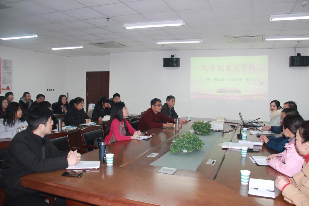 为深入贯彻落实习近平总书记“在大中小学循序渐进、螺旋上升地开设思想政治理论课” “要把统筹推进大中小学思政课一体化建设作为一项重要工程”讲话精神,落实教育部《“新时代高校思想政治理论课创优行动”工作方案》要求, 12月15日下午,太阳成tyc122cc集团“大中小思政课一体化建设”研讨会在图书馆南楼801会议室召开。公司班子成员、各教研室主任及教师代表与来自太阳成tyc122cc集团附属中学、河南师范大学附属中学的思政课教师参加了研讨会。会议由经理汪如磊主持。