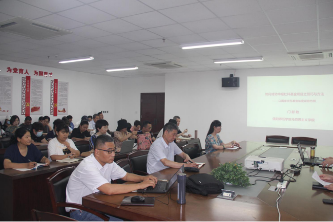 门教授以“如何成功申报人文社科基金项目之技巧与方法---以国家社科基金年度项目申报为例”为主题,从国家社科基金选题贵在精准、项目申请书填写要注意技巧、好的课题论证是成功之关键、文本写作与文字规范不可小觑等方面作了精彩报告。