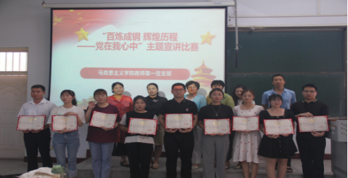 为庆祝中国共产党成立一百周年,重温党的光辉历程,歌颂党的伟大成就,加深员工对中国共产党伟大成就的了解和对党的热爱,6月9日下午,公司教师第一党支部开展了“百炼成钢 辉煌历程——党在我心中”主题宣讲周主题演讲比赛,有仇继辉等11名同学荣获宣讲比赛奖项。