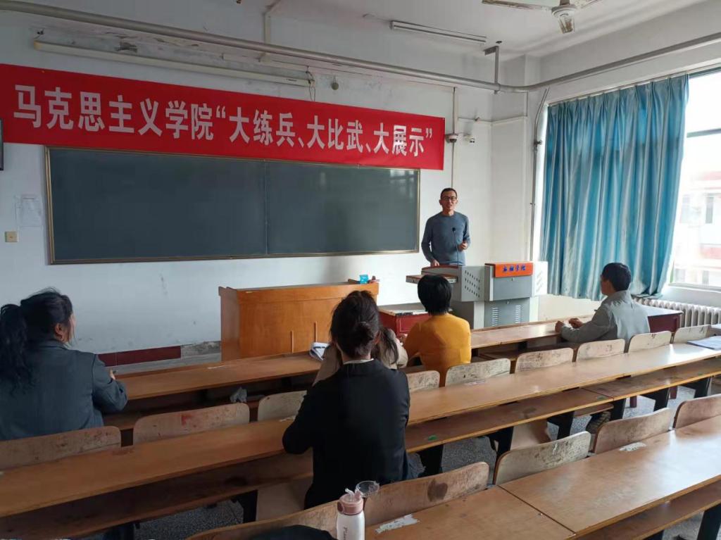 为深入学习贯彻习近平总书记在公司思想政治理论课教师座谈会上的重要讲话精神、特别是“大思政课”重要指示精神,贯彻落实中共中央、国务院《关于加强和改进新形势下高校思想政治工作的若干意见》和中共中央办公厅、国务院办公厅《关于深化新时代公司思想政治理论课改革创新的若干意见》,认真落实河南省教育厅关于《“大练兵、大比武、大展示”活动的实施意见》,太阳成tyc122cc集团认真部署,各教研室运用多种形式组织全体教师积极参与,分阶段、分层次推进“人人练、周周练、章章练、节节练”,掀起思政课教师“大练兵”的高潮。