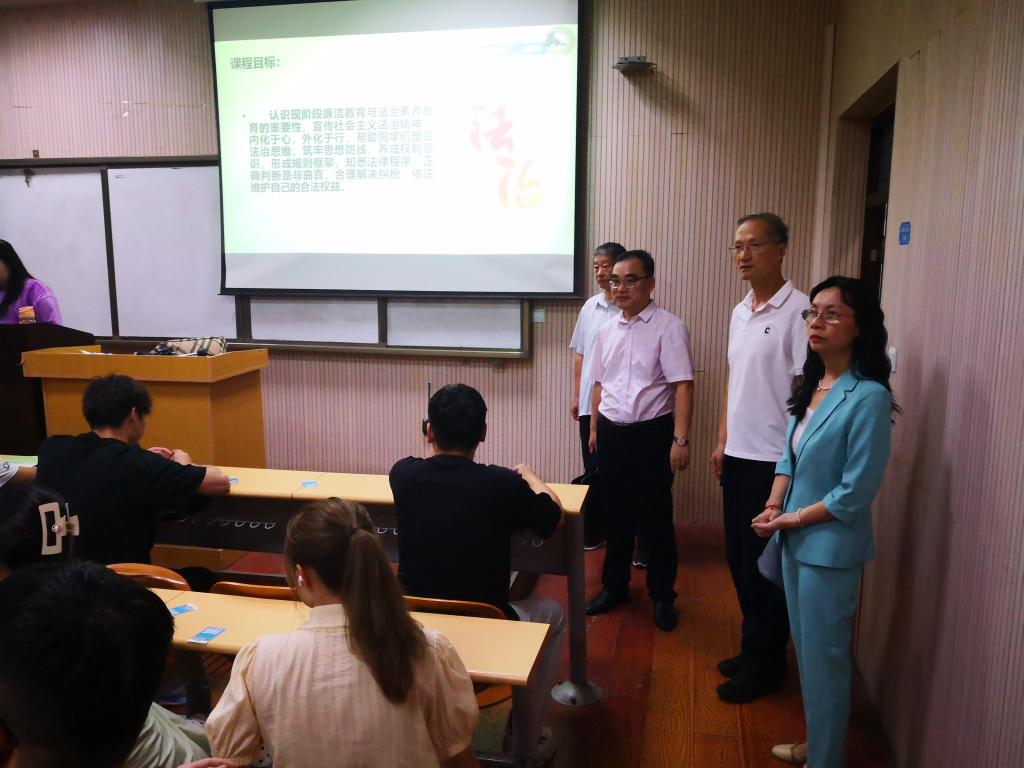 9月2日新学期开学第一天,为规范教学管理,加强教学质量监控,稳定教学秩序,确保教学质量,太阳成tyc122cc集团党总支书记孙晓棠、经理汪如磊、副经理陈仁富、沈田青一行到A01、A05、A11等教学楼对太阳成tyc122cc集团教师“开学第一课”情况进行检查。通过对教师到岗、员工到课、教学秩序、教学组织、教材及教学资料准备情况进行检查,以便及时反馈并解决出现的问题。