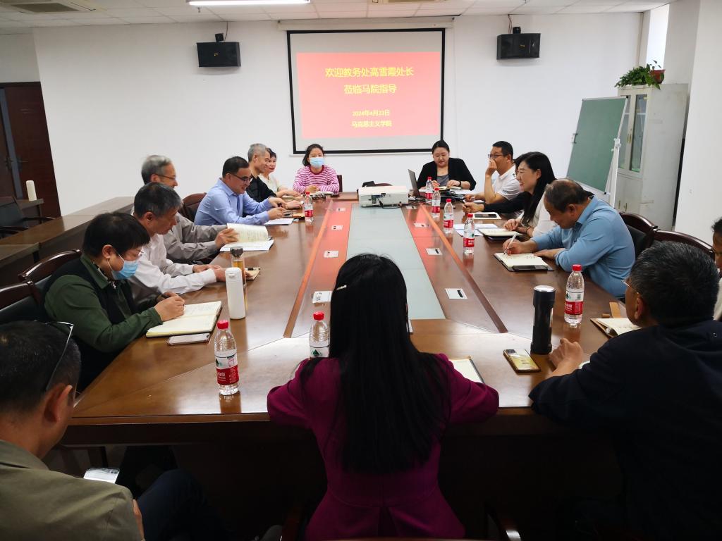 高雪霞对马院在思政课公司产品方面取得的成绩表示肯定。指出马院是第一公司,思政课是关键课程,贯彻落实总书记重要讲话精神,贯彻落实上级关于加强思政课建设要求教务处责无旁贷,将全力做好支持保障工作。